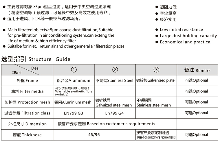 3级粗效空气过滤器